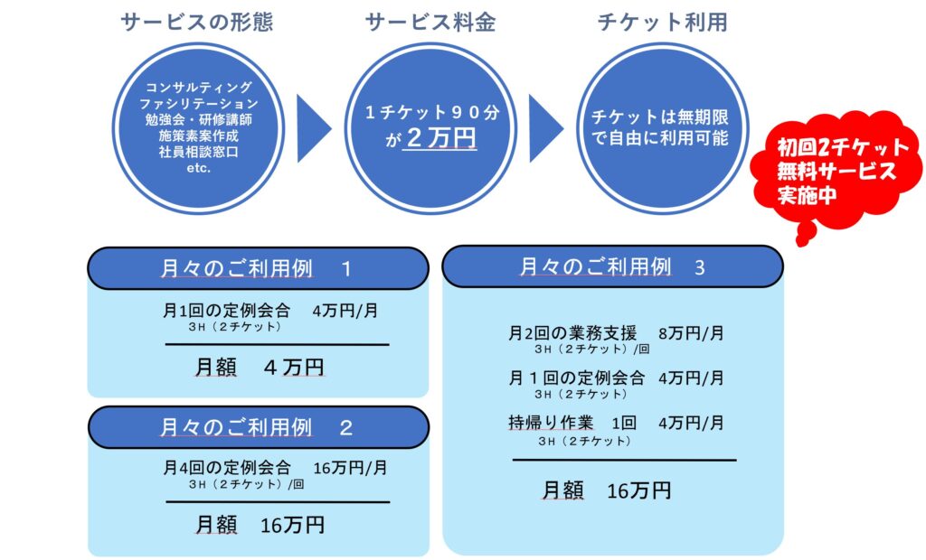 ※ カスタム見積もOK! > ご依頼案件がある程度まとまっており、予算イメージが既にございましたら、チケット制に依らない「個別お見積り」として承ることも可能です。