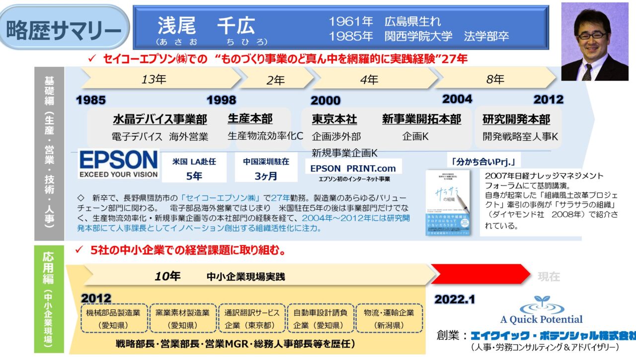 - 2022.1 エイクイック・ポテンシャル㈱ 創業 代表取締役社長 @長野/諏訪